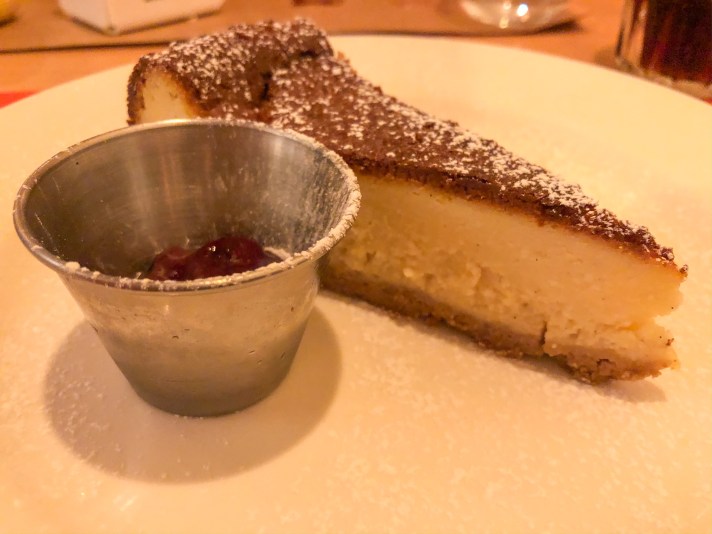 Nonostante non sia previsto nel menù a prezzo fisso del pranzo, decido di concedermi lo stesso un peccato di gola e ordinare il dolce. La mia scelta ricade su una fetta di cheesecake accompagnata da salsa ai frutti di bosco. Se siete in dubbio a fine pasto, sappiate che non è leggerissima ma sicuramente buona. In alternativa potete optare per un cono gelato così da gustarvi il vostro dolce mentre tornate fuori a fare shopping.