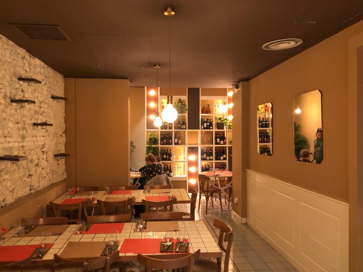 Il ristorante ha un’atmosfera curata e moderna, ma con accorgimenti vintage d’oltreoceano. In particolare, i divenenti di pelle marroni fanno molto stile USA e sono dotati di un comodo appendono laterale dove poter appendere la borsa.