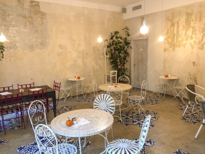 Da Gelsomina i colori tipici del Sud Italia la fanno da padrone, con pareti bianche lasciate volutamente grezze e tanto spazio. Qua tra un tavolino e l’altro c’è sempre tanto spazio, non ci si sente mai ammassati come accade in altri posti la mattina e non solo.