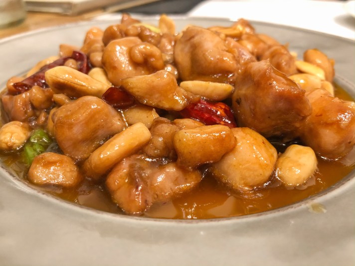 Per iniziare prendiamo un piatto tradizionale Sichuanese, inventato dallo chef della famiglia di Ding Baozhen, guardia del principe nella dinastia Qing 400 anni fa. L’aggiunta delle arachidi nel piatto lo rese il preferito del principe, che onorò Ding Baozhen con il soprannome di Kongpao (guardia reale), da cui poi il piatto ha preso il nome. Semplice, buono e nonostante la presenza dei peperoncini per niente piccante, giusto una punta per dare quel qualcosa in più.