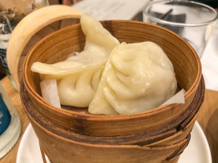 Nel mentre ci portano anche un altro piatto dalle radici antichissime, i ravioli di carne al vapore. Tipicamente mangiati durante il capodanno cinese, furono inventati dal medico Zhang Zhongjing durante la dinastia Han, circa 2000 anni fa. Caldi, caldissimi, con un morso ne apro uno e lo lascio raffreddare mentre lo intingo nella salsa di soia. Sono un piatto semplice e dal gusto delicato.