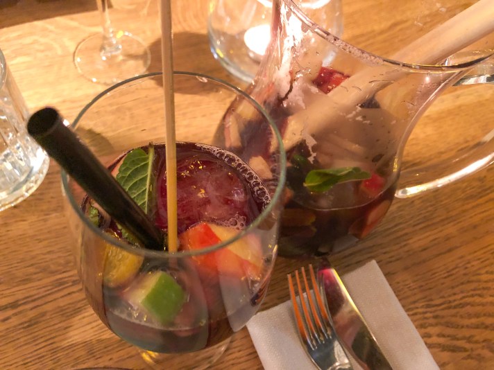 Visto che alla mia salute ci tengo, decido di seguire i numerosi consigli dei vari dottori che suggeriscono di bere almeno 2 litri di acqua al giorno. Prendo 2 litri di Sangria. Fresca, fruttata, dolce e veramente buona, perfetta per accompagnare un pasto a base di piatti tipici e allegria.