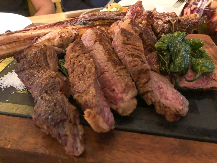 Per non farci mancare nulla, ordiniamo un Tomahawk di Black Angus da 1kg che ci viene servito con contorno di patate ed insalata mista. La carne è cotta alla perfezione e il suo grasso si scioglie in bocca. Se solo ci fosse stata meno gente l’avrei afferrato e sbranato a mani nude, una delle carni più buone che abbia mai mangiato.