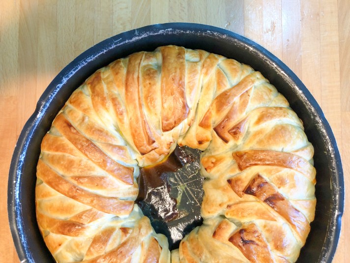 - Arrotolate il tutto lasciando un pezzetto di pasta sfoglia per i decori di chiusura