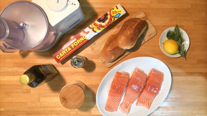 - Sminuzzate la salvia e prendete solo le “foglie” del rosmarino prima di metterli nel frullatore con olio, sale e pepe per fare il trito