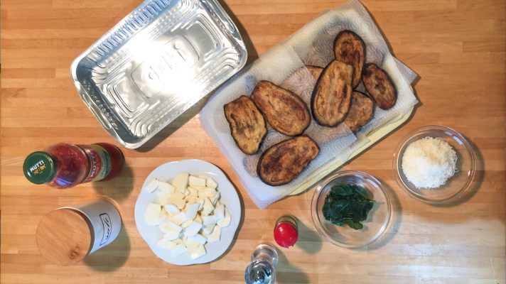 - Fate uno strato di fette di melanzane fritte