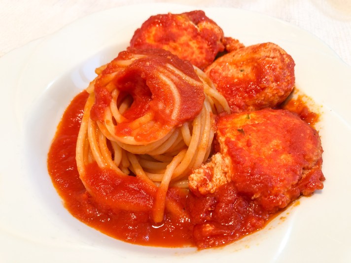 Gli spaghetti al sugo magari con due foglie di basilico fresco in cima sono un’opera d’arte che esporta il Made in Italy nel mondo da sempre. Qui ve li propongo in una ricetta che li vede abbracciare delle polpette di ricotta per un piatto da gustare con tutti i sensi.