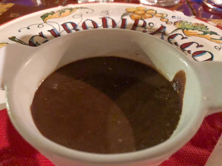 Letto il menù online abbiamo già le idee ben chiare sui piatti per questa cena, ma non avevamo tenuto conto del COVID che ha scombussolato un po’ il menù. Poco male però perchè il “Giro Sfizioso” con una varietà di specialità locali c’è sempre.