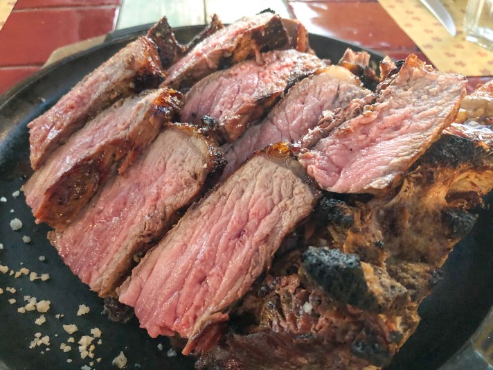 Per andare sul sicuro, come secondo prendiamo una bella bistecca alla fiorentina, il meglio che la zona ha da offrire tra le specialità di carne per i palati dei carnivori più affamati. Una bistecca di 1,4kg tutta bella rossa viene portata in cucina dopo avercela fatta vedere. Ci viene servità ancora fumante appena tolta dalla griglia ma, subito al taglio, si nota che purtoppo la cottura è stata sbagliata: anzichè al sangue è stata fatta più che media, uno spreco per una carne simile. Nonostante tutto rimane tenera e saporita, ma una pecca del genere non ce la saremmo mai aspettati nella patria della fiorentina.