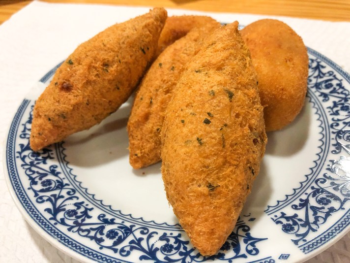 A seguire due versioni di crocchè, quelle più affusolate al baccalà e le altre di carne. Entrambe fritte ma leggere con una panatura croccante.