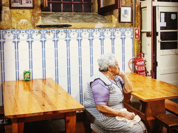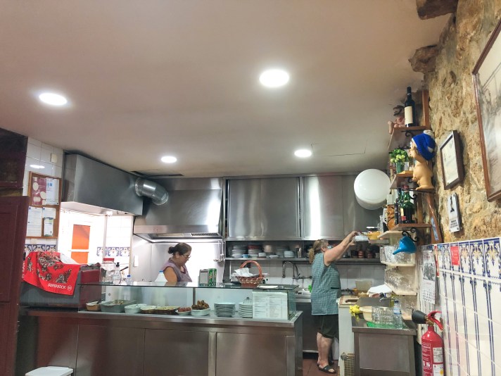 L’atmosfera è indescrivibile, con le pareti decorate da azulejos e la nonna che gira per i tavoli e dà “consigli” sotto forma di ordini alle figlie in cucina.