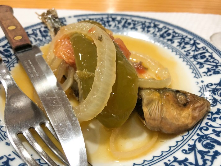 S’inizia con delle sardine marinate con contorno di cipolla e peperoni. Saporti forti e decisi che però si fanno gustare con piacere.