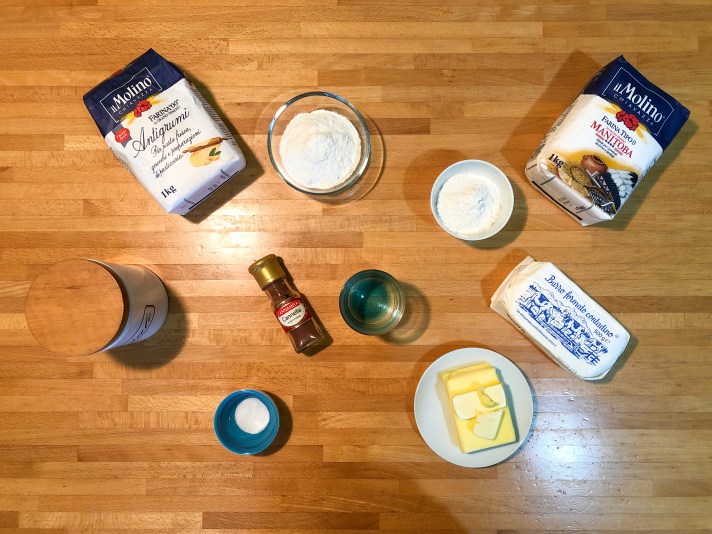 - Mischiate in una ciotola 100g di farina 00 e 75g di farina Manitoba