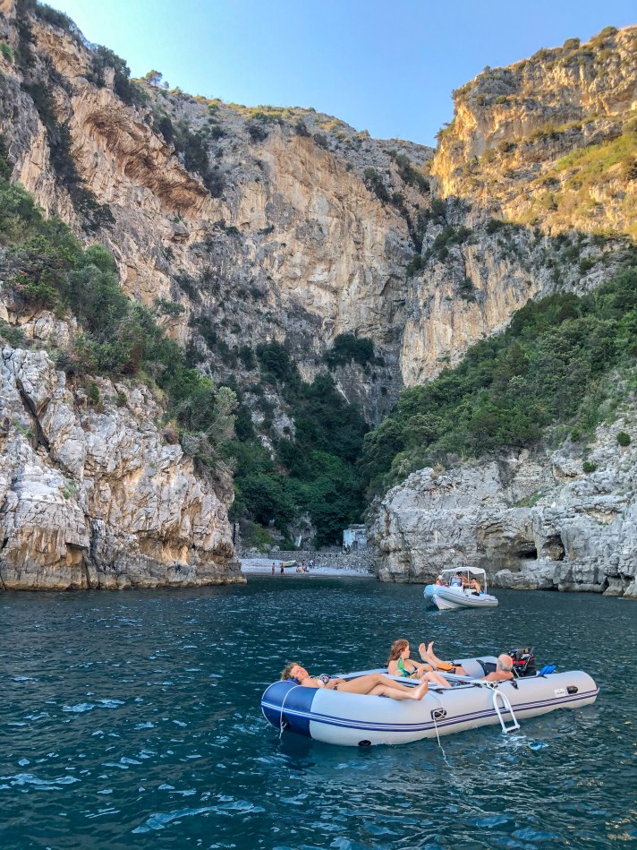 - Barca/Gommone: in Italia è consentito noleggiare un’imbarcazione per navigare in mare se sprovvisti di patente nautica, però con alcune semplici restrizioni quali lunghezza massima 6m e con motori fino a 40cv. In aggiunta, non è consentito navigare oltre le 6 miglia marine (circa 11km) dalla costa, fattore che vi permetterà comunque di raggiungere Capri senza problemi volendo. Inoltre, prestate sempre molta attenzione alle disposizioni della guardia costiera locale non avvicinandovi a più di 100m dalle pareti rocciose a strapiombo sul mare e 200m dalla costa. Per di più, tenete presente che in Costiera e dintorni il fondale è sabbioso, quindi per gettare l’ancora nei pressi delle calette e stare tranquilli date 3m di corda in mare e poi 1m extra prima di annodare la cima all’imbarcazione. Infine, se volete conoscere in quale calette e spiagge potete ormeggiarvi alle boe (se presenti) e controllare la situazione dei venti, Navily e Windy sono due semplici e comode app che potrebbero tornarvi comodo.