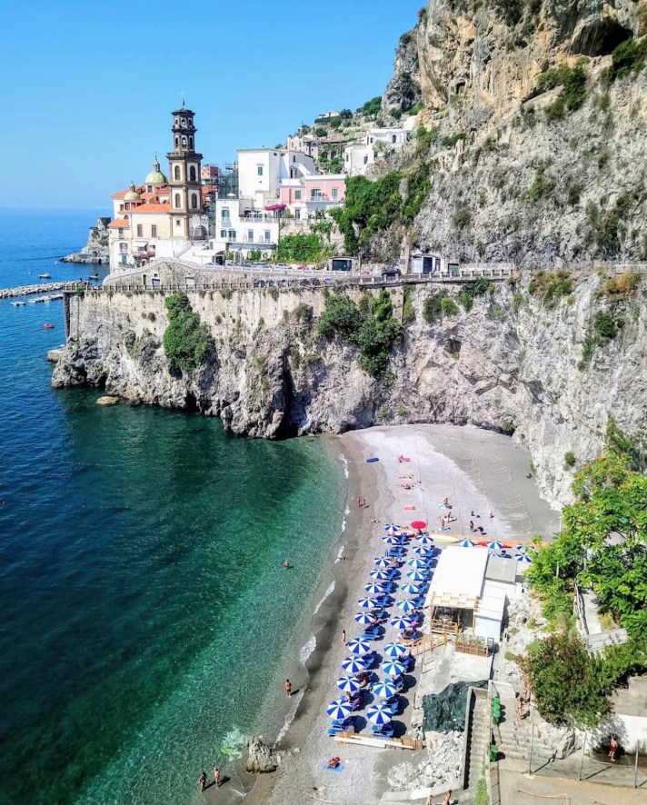 – Spiaggia di Amalfi: su questa spiaggia si trovano diversi stabilimenti balneari e un tratto di spiaggia libera. Sebbene si tratti di una spiaggia relativamente grande, nei fine settimana estivi può essere complicato trovare un posto libero se non si arriva la mattina presto.