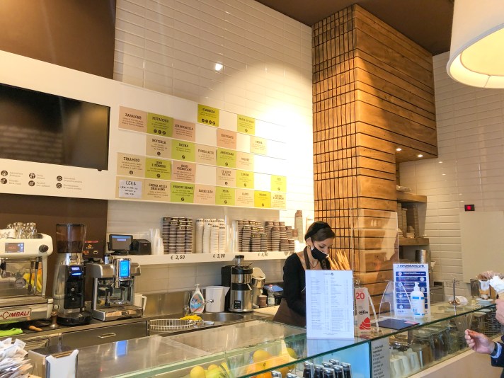 Il locale è piccolo e dal design moderno, con alcuni tavolini posti lungo i lati per sedersi e gustarsi anche un caffè assieme ad una coppetta di gelato magari (non in questi giorni ovviamente). Il servizio è alla mano e veloce, dando modo a tutti di essere serviti in breve tempo e con cura.