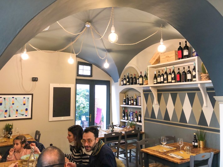 Il locale è veramente incantevole, illuminato a tratti dai raggi del sole che accendono i colori nel patio coperto. Nei mesi più caldi i tavoli disponibili all’esterno godono di un’atmosfera invidiabile, come tornare indietro nel tempo e mangiare nella piazzetta principale di un borgo medievale.