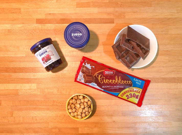 - Nel mentre tagliate a pezzettoni 220g di cioccolato al latte