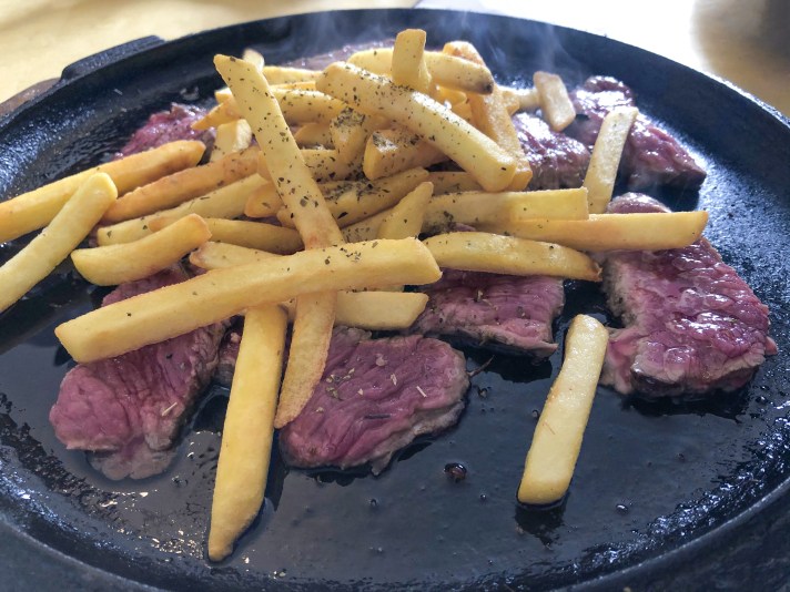 La tagliata risolleva gli animi e fa ingolosire tutti i carnivori presenti in sala. Cottura al sangue perfetta che lascia assaporare le fettine di carne alla perfezione accompagnate da delle sempre sfiziose patatine fritte.
