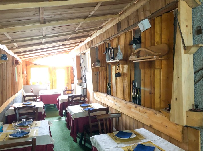 Il locale è diviso su due livelli, con un primissimo spazio esterno all’ingresso, una tettoia più riservata sempre al piano terra comunicante con la saletta principale e poi le sale al piano superiore.