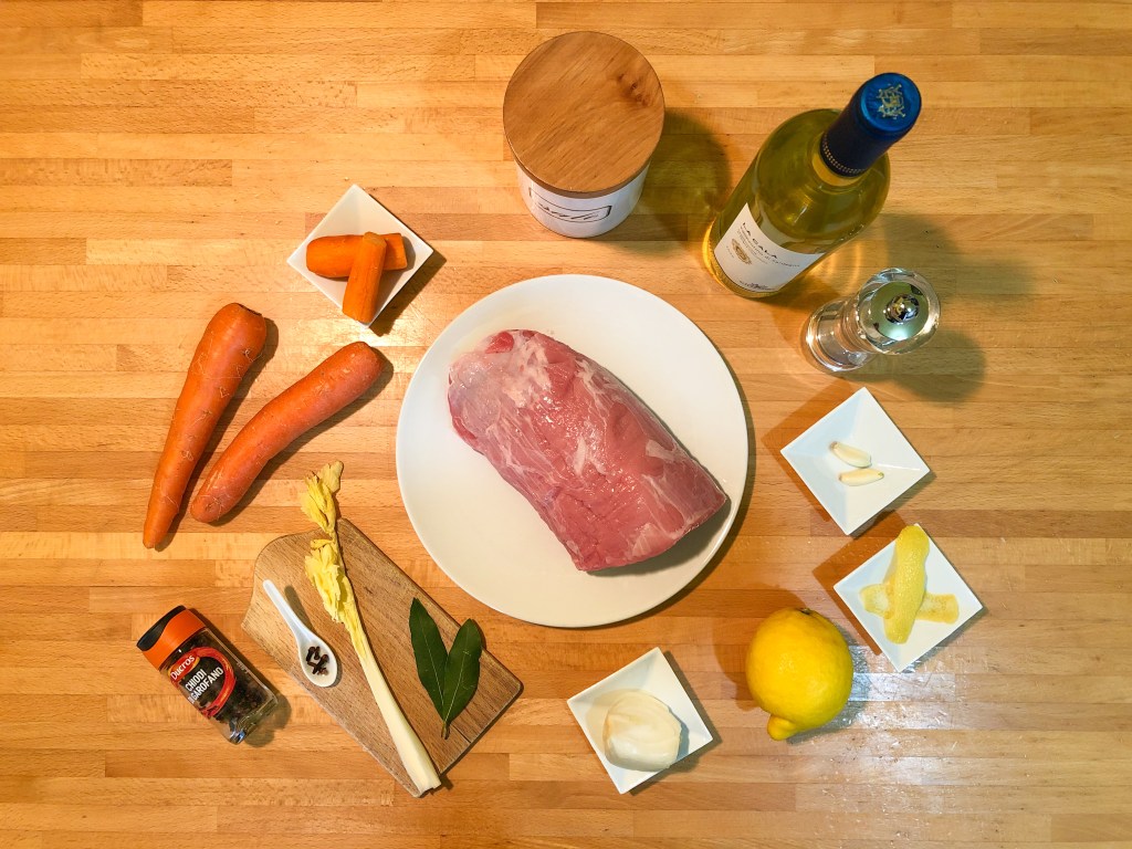 - Versate una bottiglia di vino bianco secco (0,75L) in una pentola di 26cm di diametro a fuoco spento