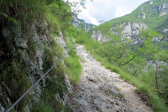 Dopo un po’ il sentiero costeggia un tratto di roccia dove è stato messo un cordino di ferro, niente di pericoloso, ma ottimo per le persone meno abituate o che hanno paura dei tratti un po’ esposti.